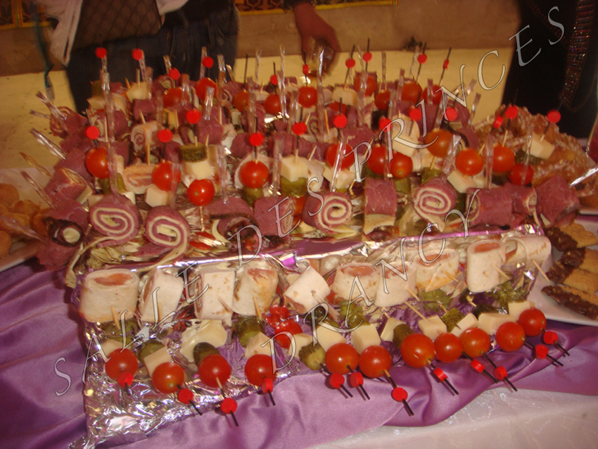 Un service traiteur de qualité vous garantit une alimentation hallal. La salle vous propose différents types de menus au choix, ou l’élaboration d’un menu sur commande :